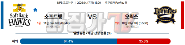 2026-04-17 NPB 소프트뱅크 오릭스 KBO/NPB분석 무료중계 스포츠분석