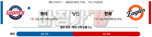 2026-04-18 KBO 롯데 한화 KBO/NPB분석 무료중계 스포츠분석