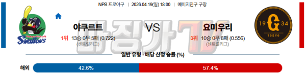 2026-04-19 NPB 야쿠르트 요미우리 KBO/NPB분석 무료중계 스포츠분석