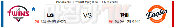 2026-04-21 KBO LG 한화 KBO/NPB분석 무료중계 스포츠분석