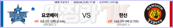 2026-04-21 NPB 요코하마 한신 KBO/NPB분석 무료중계 스포츠분석