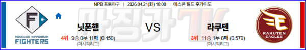 2026-04-21 NPB 니혼햄 라쿠텐 KBO/NPB분석 무료중계 스포츠분석