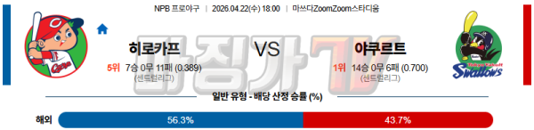 2026-04-22 NPB 히로시마 야쿠르트 KBO/NPB분석 무료중계 스포츠분석