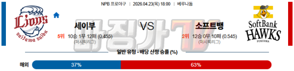2026-04-23 NPB 세이부 소프트뱅크 KBO/NPB분석 무료중계 스포츠분석