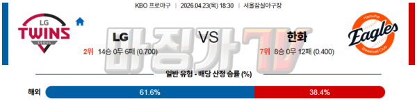 2026-04-23 KBO LG 한화 KBO/NPB분석 무료중계 스포츠분석