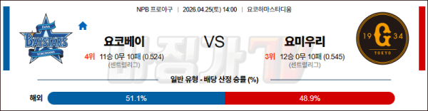 2026-04-25 NPB 요코하마 요미우리 KBO/NPB분석 무료중계 스포츠분석