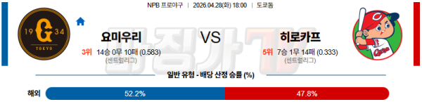 2026-04-28 NPB 요미우리 히로시마 KBO/NPB분석 무료중계 스포츠분석