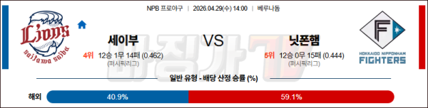 2026-04-29 NPB 세이부 니혼햄 KBO/NPB분석 무료중계 스포츠분석