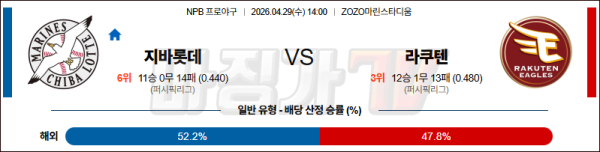 2026-04-29 NPB 지바롯데 라쿠텐 KBO/NPB분석 무료중계 스포츠분석