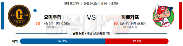 2026-04-29 NPB 요미우리 히로시마 KBO/NPB분석 무료중계 스포츠분석