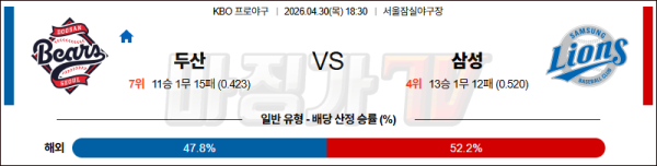 2026-04-30 KBO 두산 삼성 KBO/NPB분석 무료중계 스포츠분석