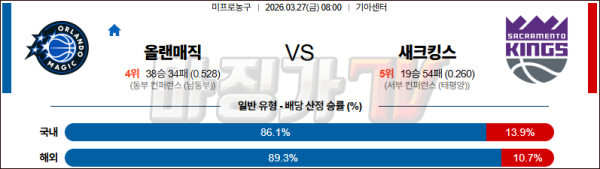 2026-03-27 NBA 올랜도 매직 새크라멘토 킹스 NBA분석 무료중계 스포츠분석