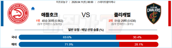 2026-04-11 NBA 애틀랜타 호크스 클리블랜드 캐벌리어스 NBA분석 무료중계 스포츠분석