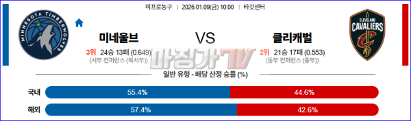 2026-01-09 NBA 미네소타 울브스 클리블랜드 캐벌리어스 NBA분석 무료중계 스포츠분석