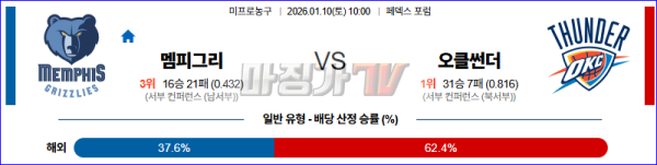 2026-01-10 NBA 멤피스 그리즐리즈 오클라호마시티 썬더 NBA분석 무료중계 스포츠분석