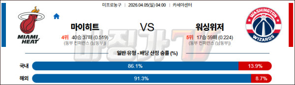 2026-04-05 NBA 마이애미 히트 워싱턴 위자드 NBA분석 무료중계 스포츠분석
