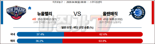 2026-04-06 NBA 뉴올리언스 펠린컨즈 올랜도 매직 NBA분석 무료중계 스포츠분석