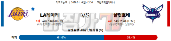 2026-01-16 NBA LA 레이커스 샬럿 호네츠 NBA분석 무료중계 스포츠분석