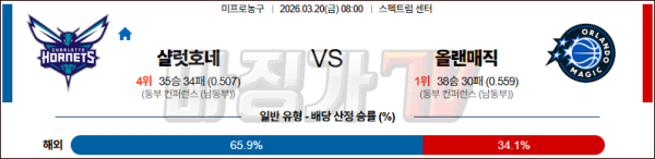 2026-03-20 NBA 샬럿 호네츠 올랜도 매직 NBA분석 무료중계 스포츠분석