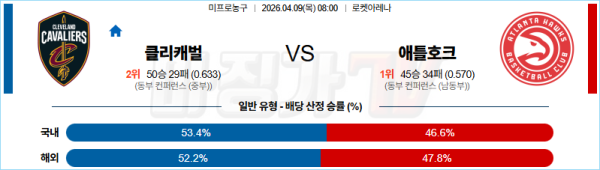 2026-04-09 NBA 클리블랜드 캐벌리어스 애틀랜타 호크스 NBA분석 무료중계 스포츠분석