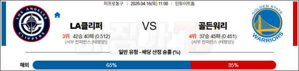 2026-04-16 NBA LA 클리퍼스 골든스테이트 워리어스 NBA분석 무료중계 스포츠분석