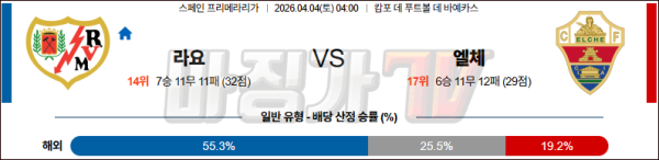 2026-04-04 라리가 라요 바예카노 엘체 해외축구분석 무료중계 스포츠분석