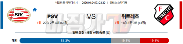 2026-04-04 에레디비지 PSV 에인트호벤 FC 위트레흐트 해외축구분석 무료중계 스포츠분석