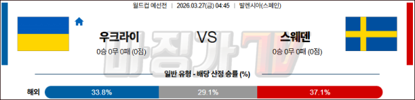 2026-03-27 월드컵 예선전 우크라이나 스웨덴 해외축구분석 무료중계 스포츠분석