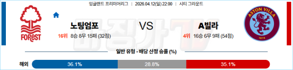 2026-04-12 프리미어리그 노팅엄 포레스트 애스턴 빌라 해외축구분석 무료중계 스포츠분석
