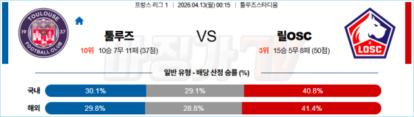 2026-04-13 리그앙 툴루즈 FC 릴 OSC 해외축구분석 무료중계 스포츠분석