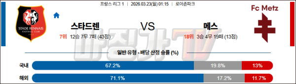 2026-03-23 리그앙 스타드 렌 FC 메스 해외축구분석 무료중계 스포츠분석