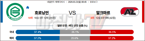2026-03-23 에레디비지 FC 흐로닝언 AZ 알크마르 해외축구분석 무료중계 스포츠분석