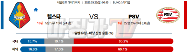 2026-03-23 에레디비지 텔스타 PSV 에인트호벤 해외축구분석 무료중계 스포츠분석