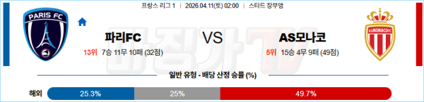2026-04-11 리그앙 파리FC AS 모나코 해외축구분석 무료중계 스포츠분석