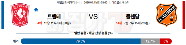 2026-04-11 에레디비지 트벤테 폴랜담 해외축구분석 무료중계 스포츠분석