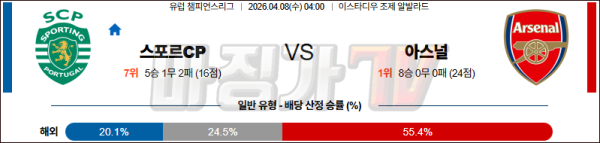 2026-04-08 UEFA 챔피언스리그 스포르팅 CP 아스널 해외축구분석 무료중계 스포츠분석