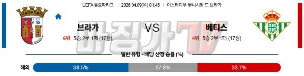 2026-04-09 UEFA 유로파리그 SC 브라가 레알 베티스 해외축구분석 무료중계 스포츠분석