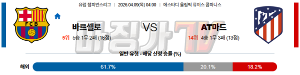 2026-04-09 UEFA 챔피언스리그 FC 바르셀로나 AT 마드리드 해외축구분석 무료중계 스포츠분석