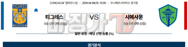 2026-04-09 CONCACAF 챔피언스컵 티그레스 시애틀 사운더스 FC 해외축구분석 무료중계 스포츠분석