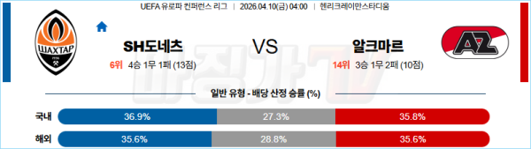 2026-04-10 UEFA 유로파컨퍼런스 샤흐타르 도네츠크 AZ 알크마르 해외축구분석 무료중계 스포츠분석