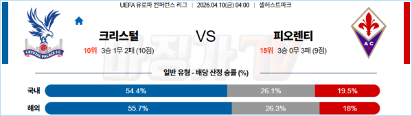 2026-04-10 UEFA 유로파컨퍼런스 크리스탈 팰리스 ACF 피오렌티나 해외축구분석 무료중계 스포츠분석