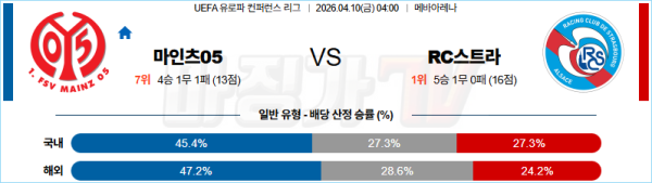 2026-04-10 UEFA 유로파컨퍼런스 마인츠 RC 스트라스부르 해외축구분석 무료중계 스포츠분석