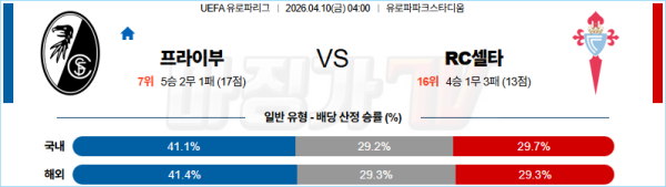 2026-04-10 UEFA 유로파리그 SC 프라이부르크 셀타 비고 해외축구분석 무료중계 스포츠분석