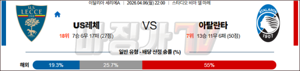 2026-04-06 세리에 A US 레체 아탈란타 BC 해외축구분석 무료중계 스포츠분석