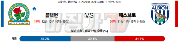 2026-04-06 잉글랜드 챔피언쉽 블랙번 로버스 웨스트 브로미치 앨비언 해외축구분석 무료중계 스포츠분석
