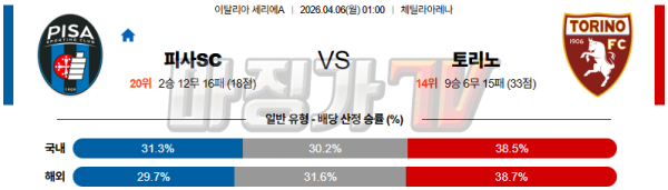 2026-04-06 세리에 A 피사SC 토리노 FC 해외축구분석 무료중계 스포츠분석