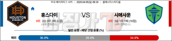 2026-04-05 MLS 휴스턴 다이너모 FC 시애틀 사운더스 FC 해외축구분석 무료중계 스포츠분석