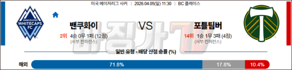 2026-04-05 MLS 밴쿠버 화이트캡스 FC 포틀랜드 팀버스 해외축구분석 무료중계 스포츠분석
