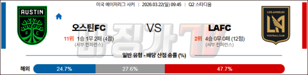 2026-03-22 메이저리그사커 오스틴 FC LA FC 해외축구분석 무료중계 스포츠분석