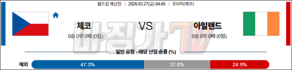 2026-03-27 월드컵 예선전 체코 아일랜드 해외축구분석 무료중계 스포츠분석